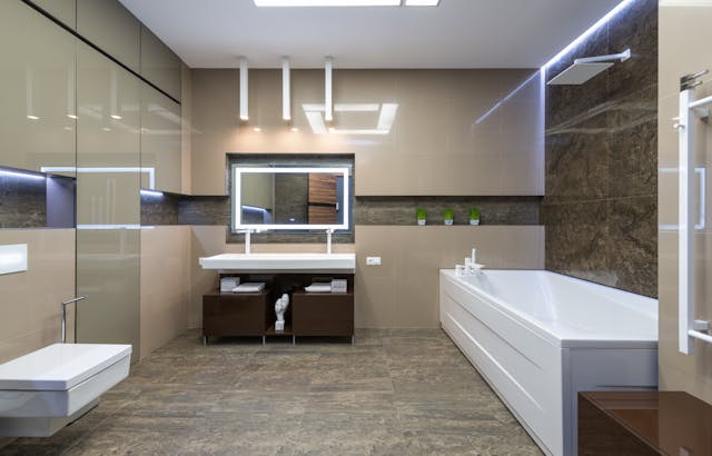 Key Features: Smart toilets, LED mirrors, automated lighting, touchless faucets, voice control.