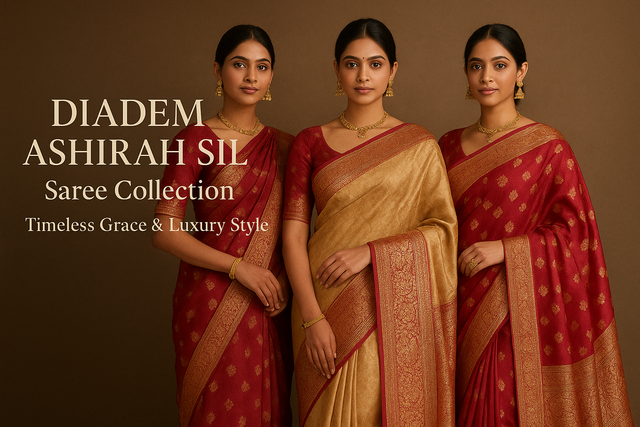Diadem – Ashirah Sil is a premium saree collection that blends traditional Indian craftsmanship with modern design aesthetics. It represents timeless grace, luxury, and sophistication in every drape.